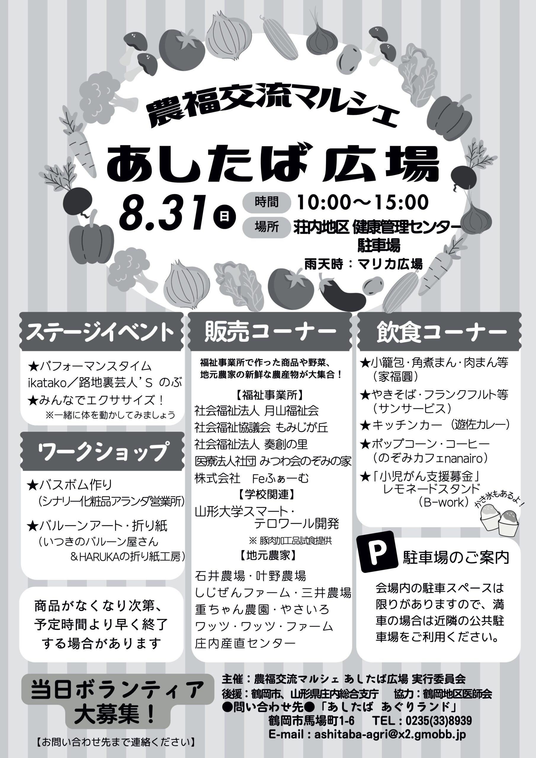 ステージイベント、ワークショップ、野菜や農産加工品の販売コーナー、飲食コーナーなど多彩な内容で開催します。
